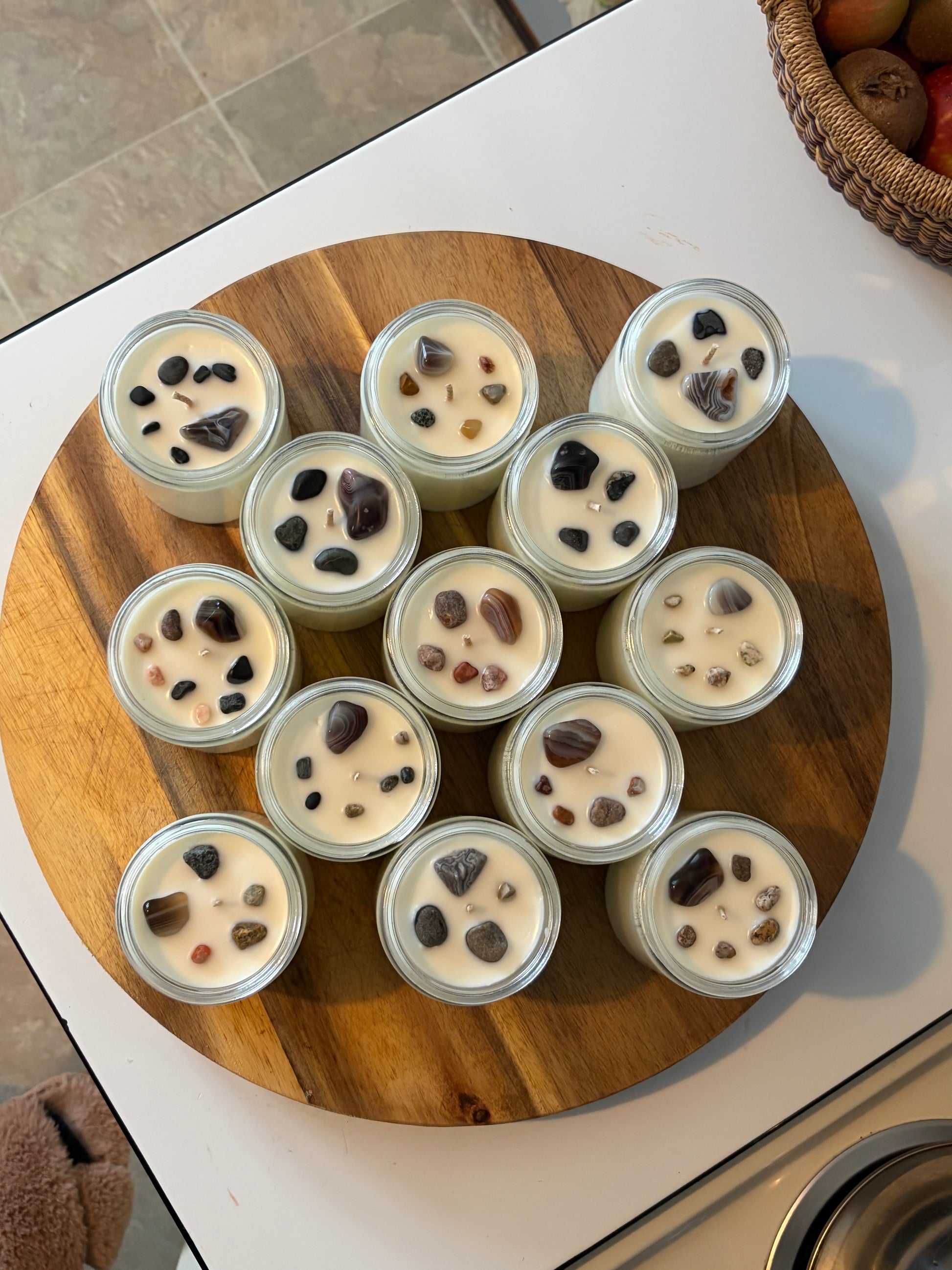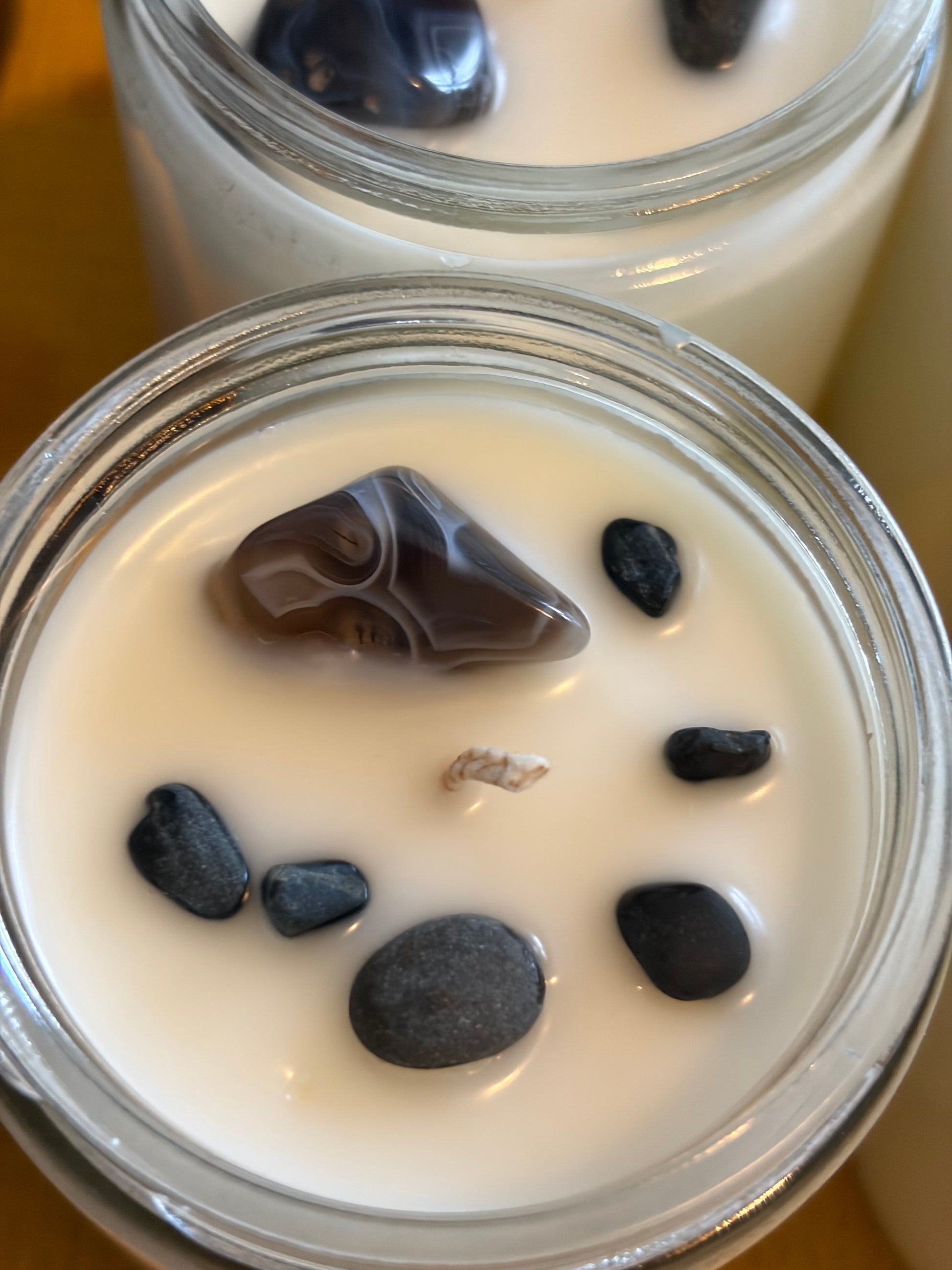 Each candle holds one polished agate and various Lake Superior stones. None are ever the same. Gift yourself a happy surprise with a candle as unique as you are! ❤️